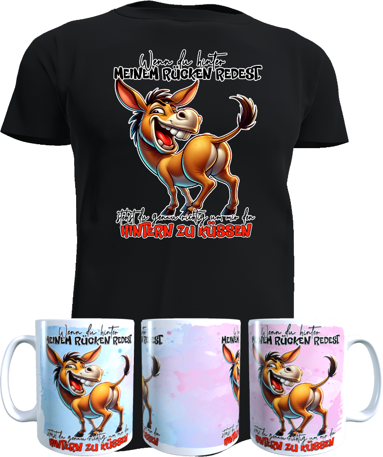 Lustiges Esel-Motiv – Shirt oder Tasse | Frecher Spruch gegen Lästerei