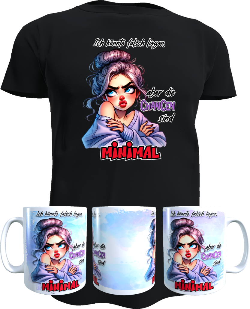 Lustiges Rechthaber Motiv – Shirt oder Tasse | „Ich könnte falsch liegen, aber die Chancen sind minimal“